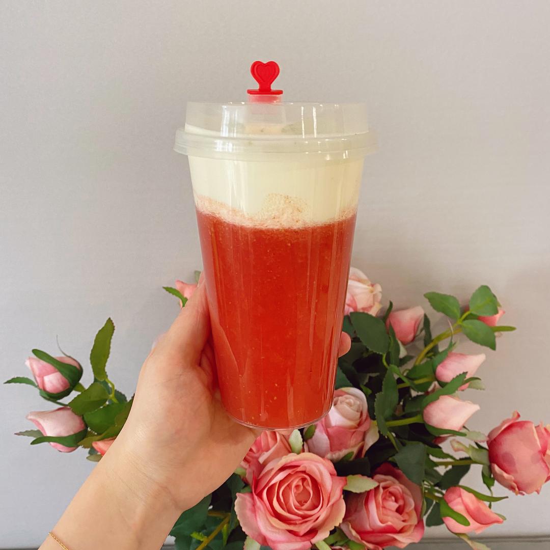 草莓➕代糖➕茶➕几块冰块(可不放),放入榨汁机。