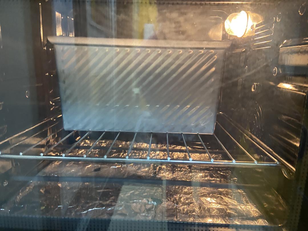 发酵到九分满,烤箱发酵时间大概两小时吧!拿出吐司盒是就预热烤箱180度5到10分钟。
