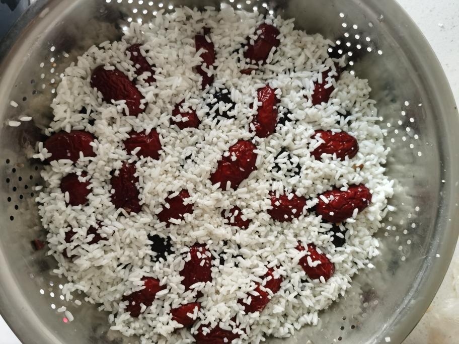 挖一勺看看吧,几乎已经完全分不出哪些是红枣哪些是糯米了