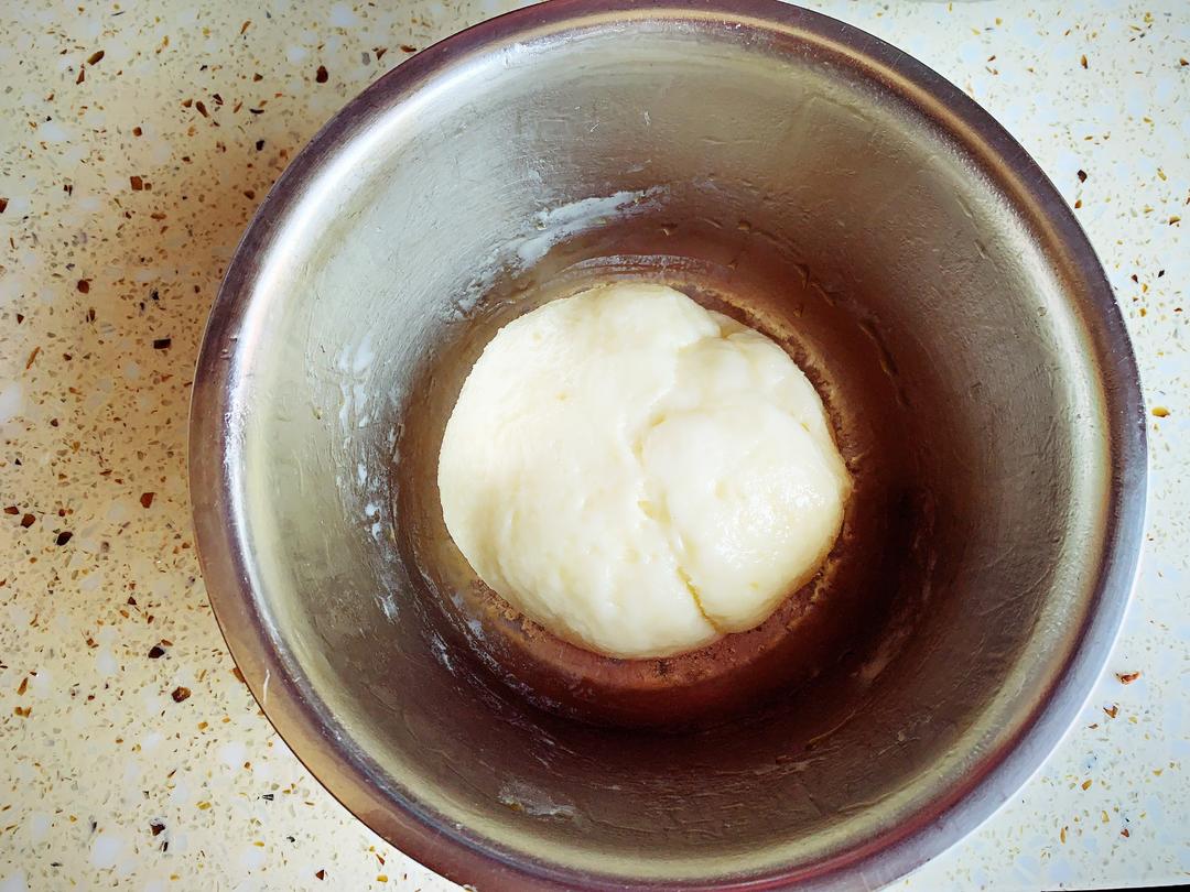 取出趁热加入黄油,混合均匀成团,放凉待用
