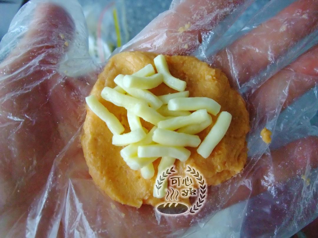 1、如果您没有我这种烤盘,一是可以用烤箱,二是可以用平底锅。若用烤箱,烤箱预热,200度10分钟,再转170度,15分钟即可。若用平底锅,可以事先将面团压扁,慢慢煎即可。 2、加入的澄粉和玉米淀粉要根据地瓜的干稀程度来定。可以慢慢加,调成能成团的状态。 3、面团干些好操作,我今天的有些稀,不太好弄,带了一次性手套还好些。若是面团稀,可以弄好后放冰箱里冷藏下。 4、在包的过程中发现,面团太稀不好包。所以后来就改成先弄一半的面,按扁。上面放奶酪丝,再弄另一个面团,按扁,盖在上面。最后把边缘捏紧,弄圆,能相对好弄些。表面不太光滑也没太大关系,在烤的过程中自然会变好。当然事先弄光滑更好哈。 5、如果没有奶酪,不加或者加别的馅料也可以。 6、我做的不甜,如果您喜甜,可以适当加糖量或炼奶量。 7、我用如下压泥工具压成泥的。它是阳晨的,用了几次,挺好用的。如果您没有可以用擀面杖。