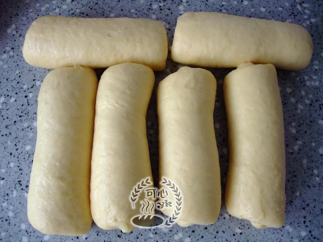 1、要看到面团表面完全光滑为止。(面团出缸温度26度内)注意控制面温,如果在打面和整形过程中就开始发酵了,组织就会变粗。 2、这款面包是百分百中种,主面团里没有面粉! 3、注意水量调节就行!建议不要把水量一次性加完。 4、没有特意排气,面团滚圆也不要太紧。 5、与以前不同的是,此次用了后盐法,这样有利于缩短出膜时间。 6、此款配方里没有牛奶,水量偏大,面团有点粘。整形时我加了少许手粉。
