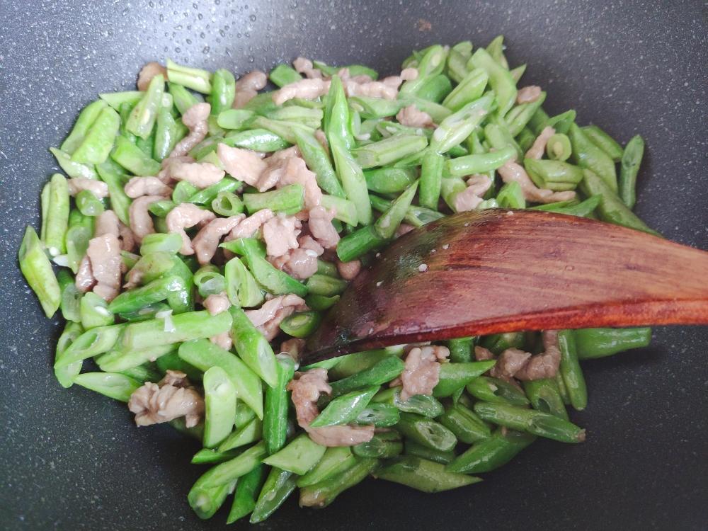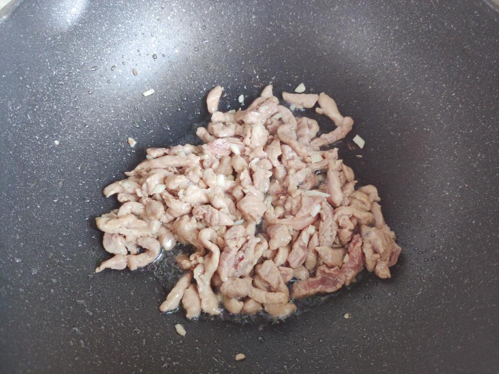 翻炒至猪肉丝变色