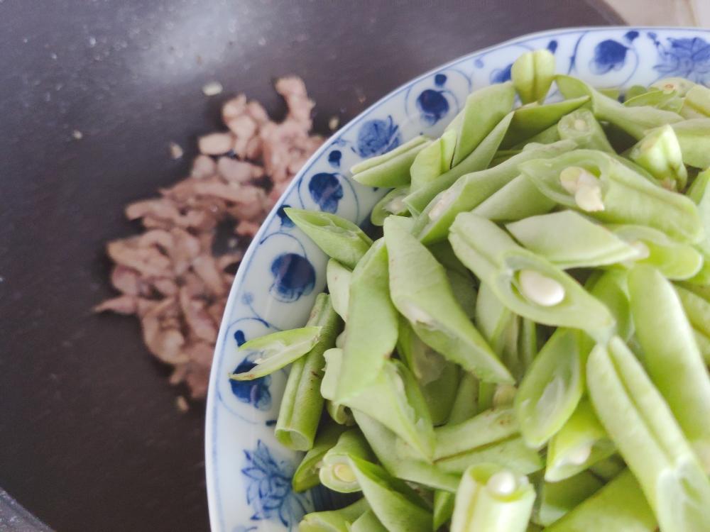 四季豆掐去头尾,撕去筋,清水中浸泡片刻