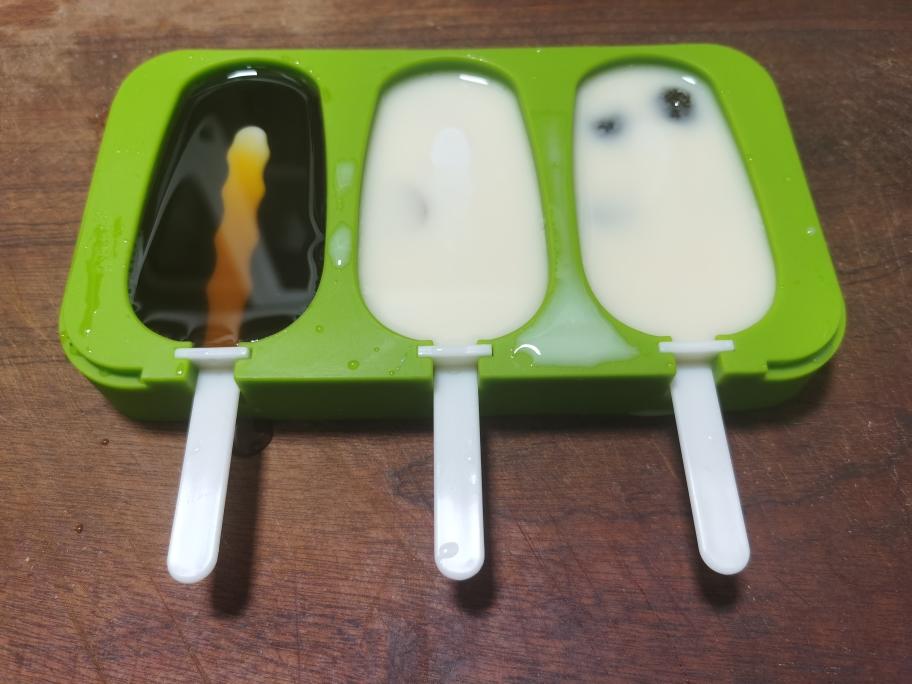 左起第一只是红糖红茶冰棍,第二只是芋圆奶茶冰棍、第三只是珍珠奶茶冰棍。