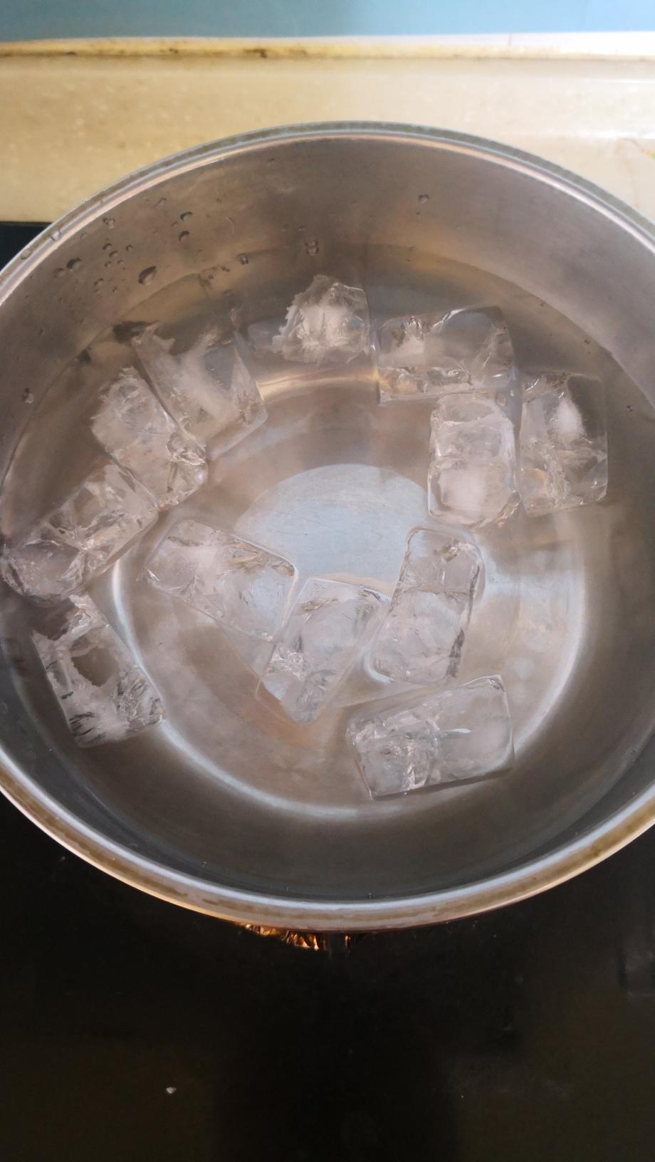 事前准备好冰块加凉水。(我家有存储冰块的习惯,所以随用随取)