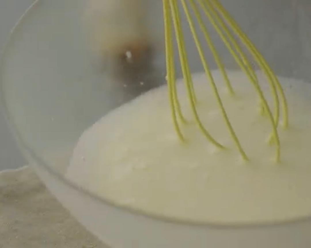 加入牛奶继续搅打至混合均匀,面糊顺滑无结块