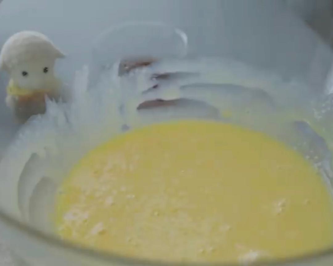蛋清蛋黄分开,蛋黄加炼乳搅打至混合均匀