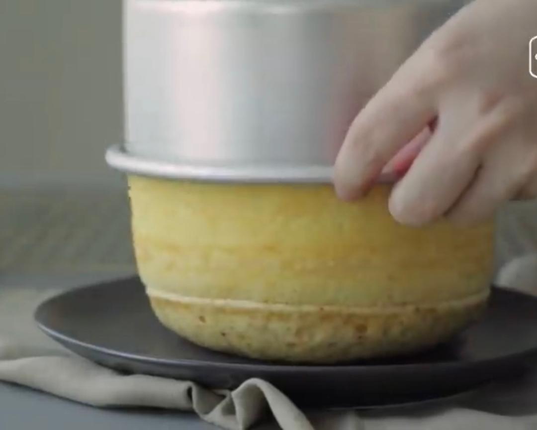 固底6寸模具底铺一张裁好的烘焙纸(方便脱模),将混合好的面糊由一定高度倒入模具中