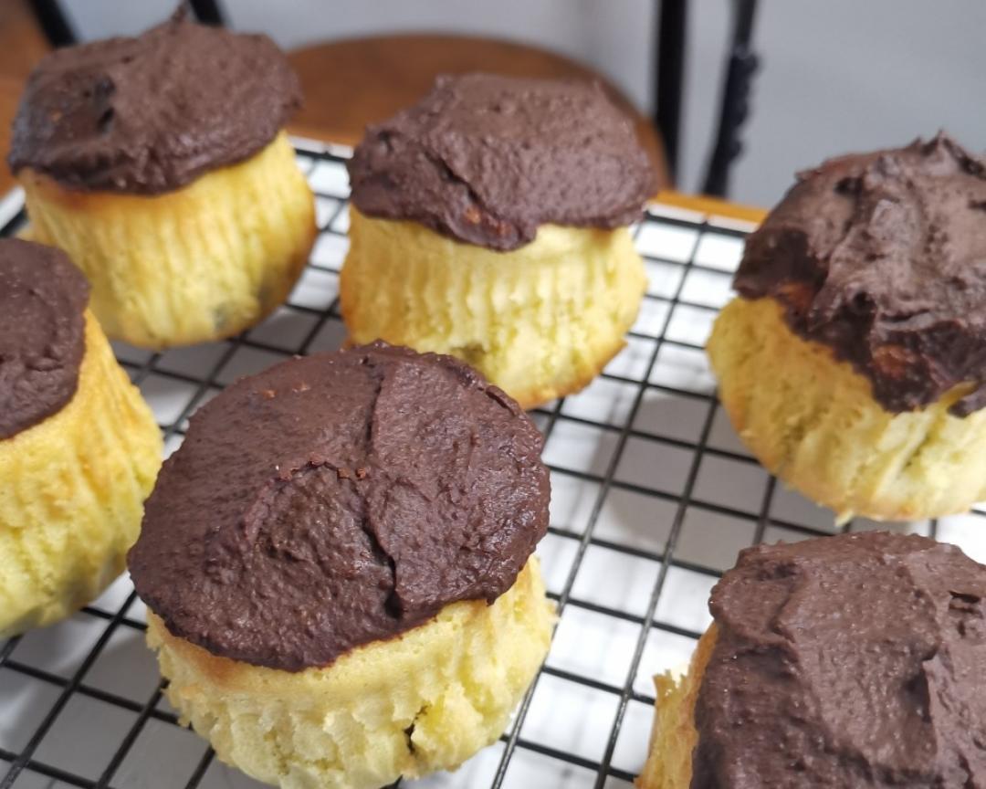 挤入蛋糕面糊中间到六分满 入烤箱热风175度 20分钟