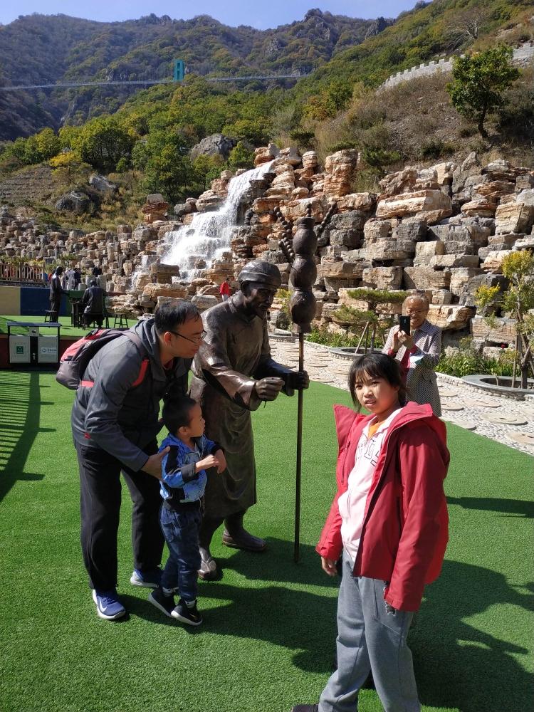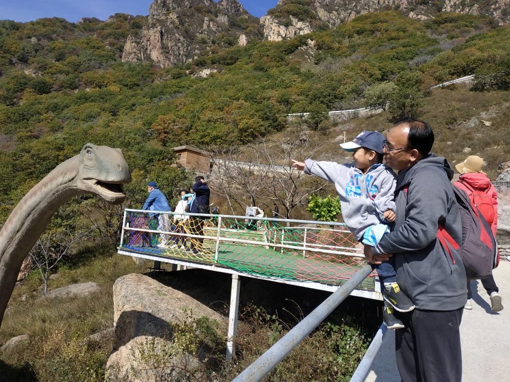 百瑞谷,赶早去停车停的近,不然一上来就要爬个陡坡。这样坐车到顶慢悠悠走下山就好。 孩子们遇到第一个景点,老二脾气冲找别人手里要了胡萝卜去喂马