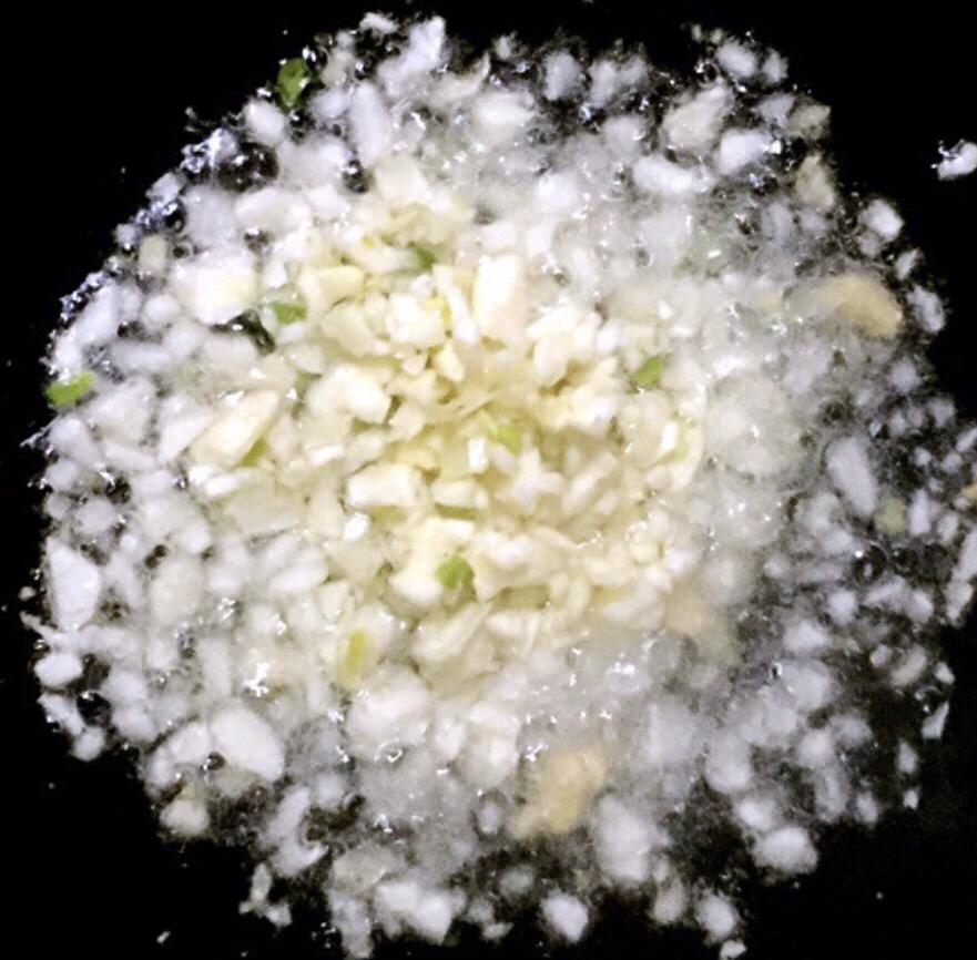 锅中倒入底油加热放入葱姜蒜爆香