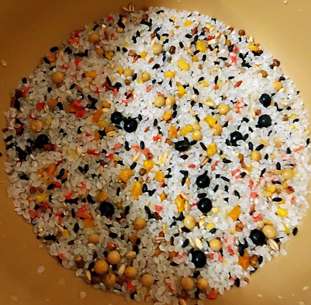 多谷米淘洗干净添加适量清水放入电饭煲中开始启动