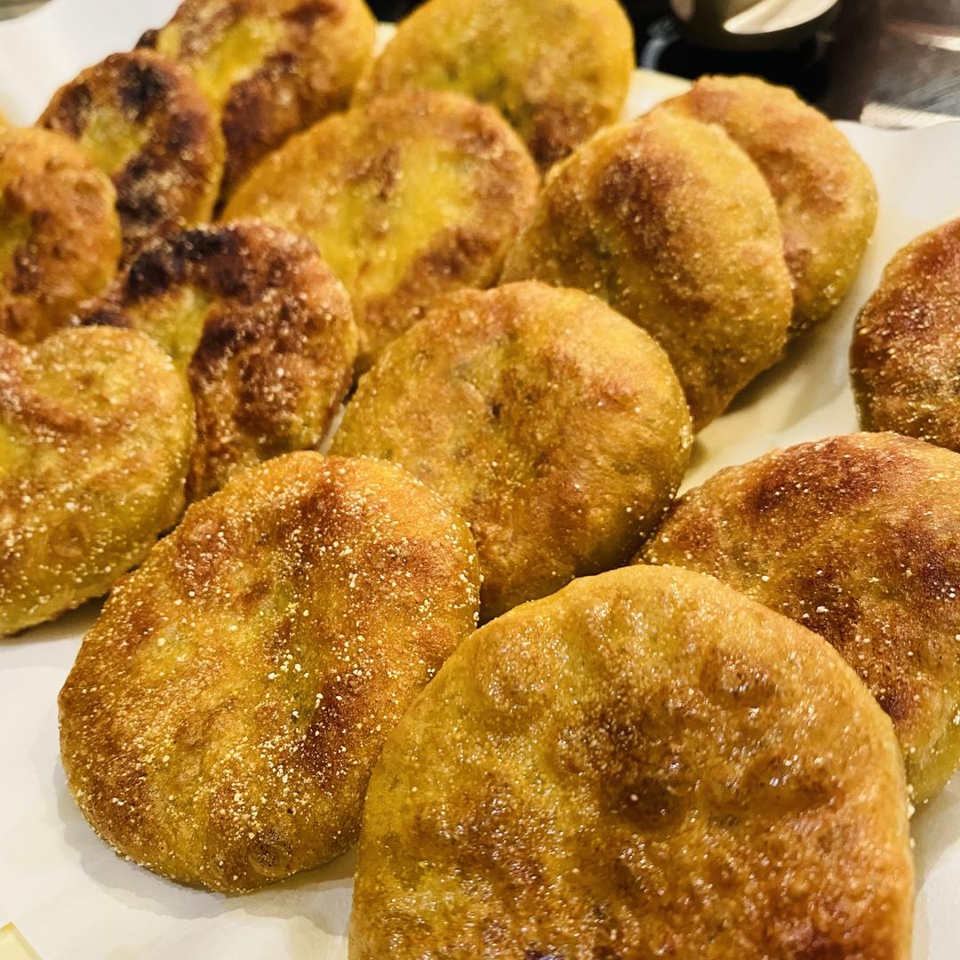 按压成饼饼 撒一些玉米面粉