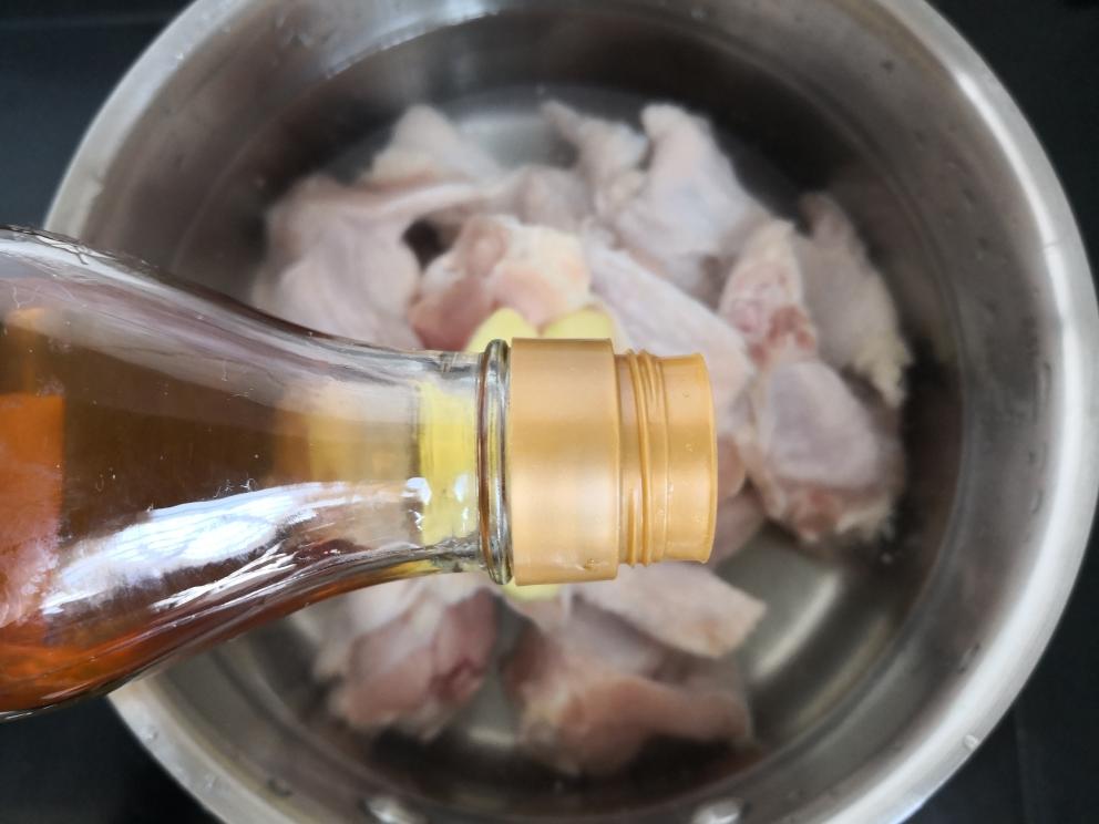 鸡翅根放入清水中,加入四片生姜。