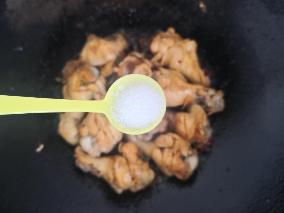 放入鸡翅根,倒入约20毫升太太乐原味鲜酱油,翻炒均匀。