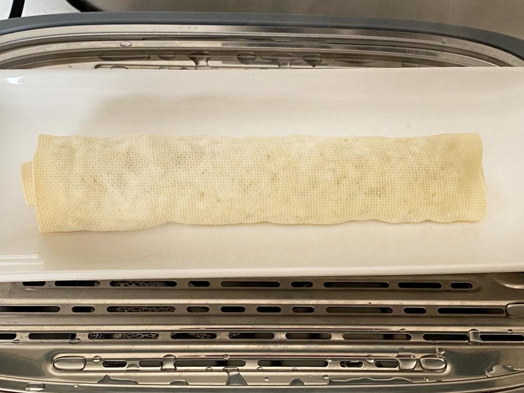 将蒸熟的豆腐皮肉卷取出。