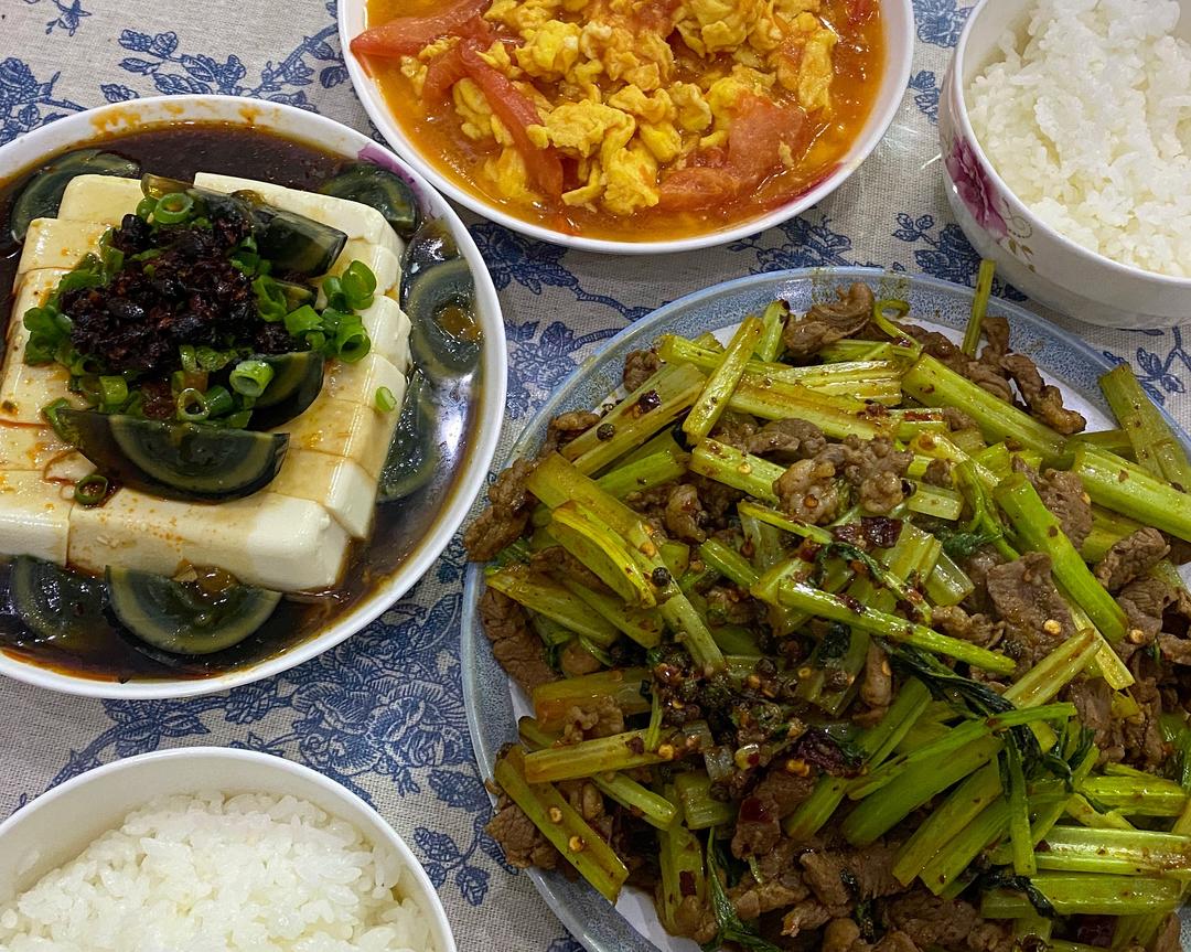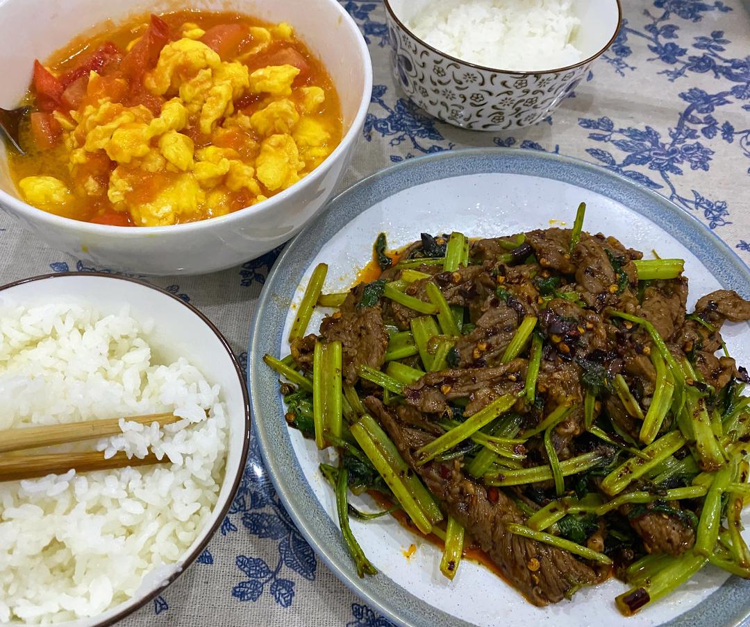 因为不爱吃太脆的,而且牛肉滑过了,所以先下芹菜