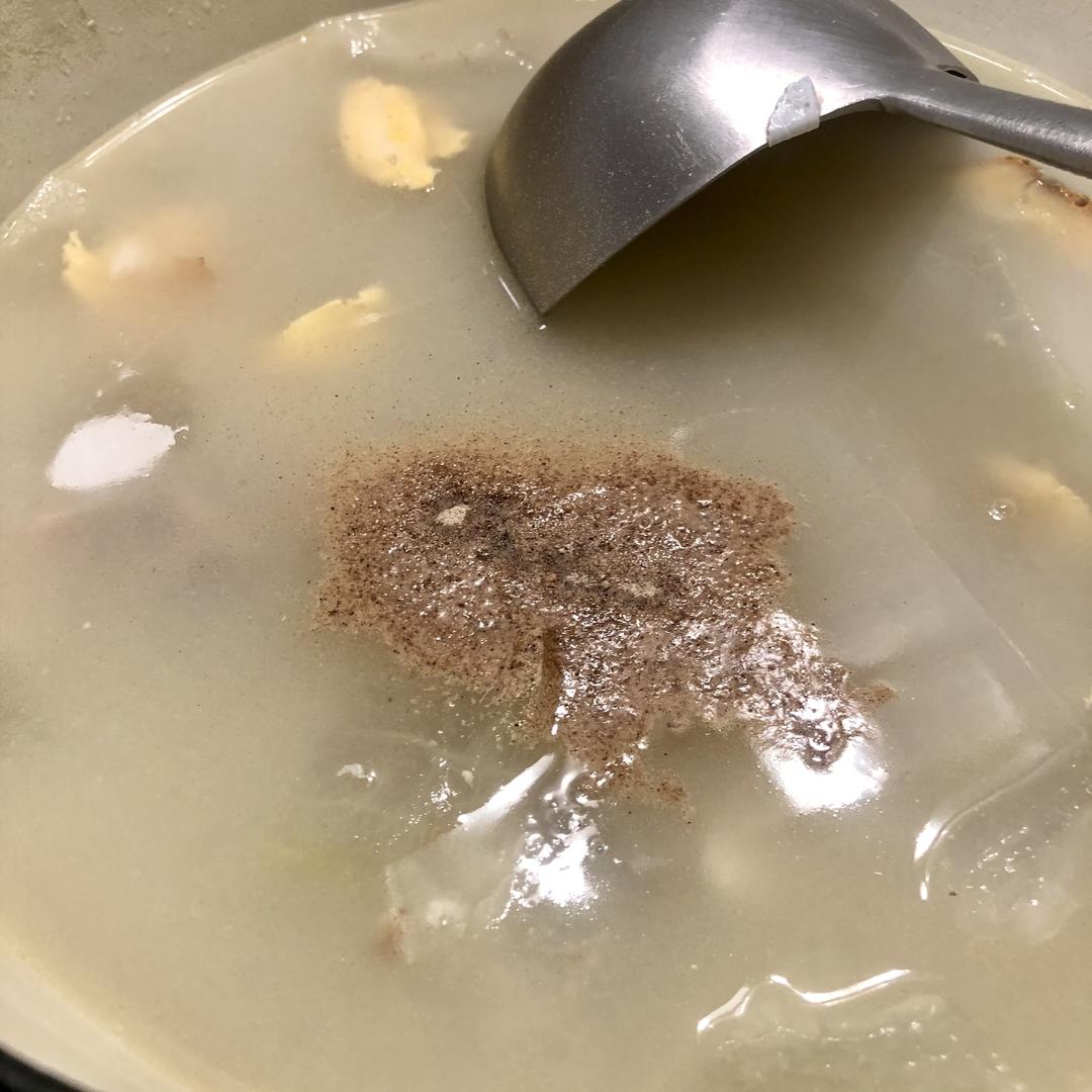 出锅前放入适量白胡椒粉跟盐调味