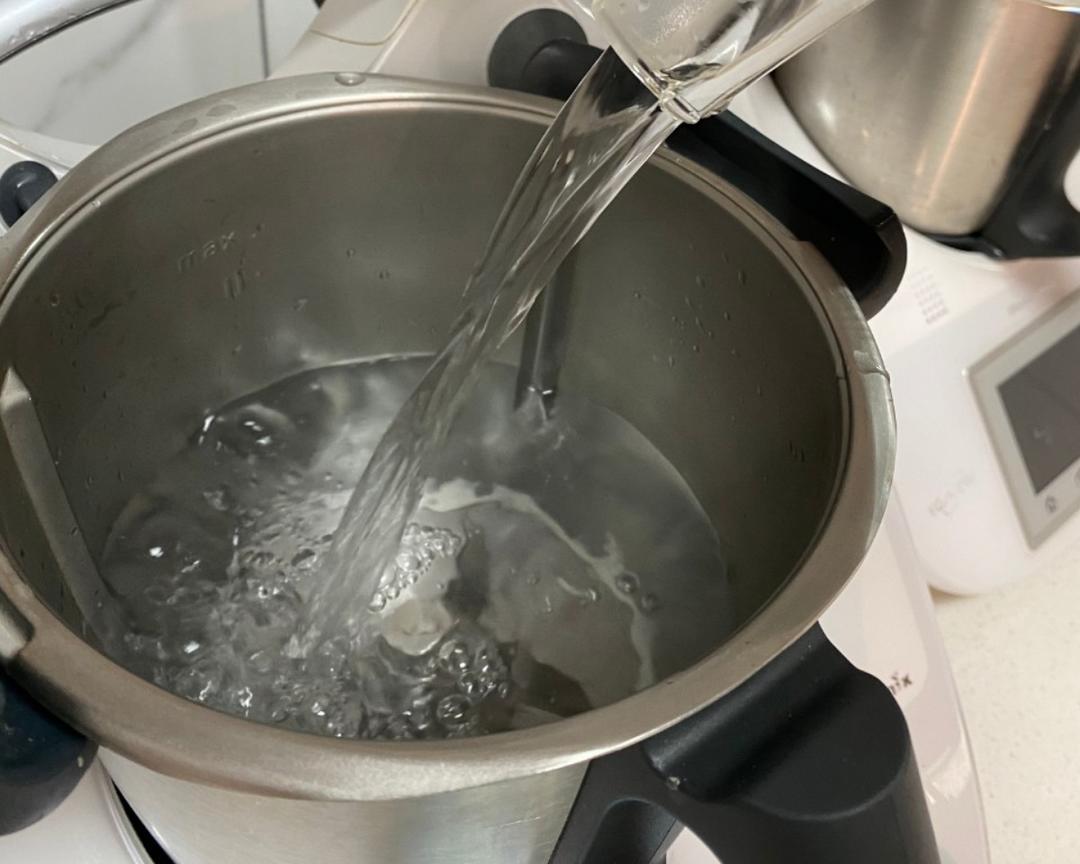 主锅内加入2000g开水(不着急吃饭凉水也可以😊),时间2分钟+温度V+小勺