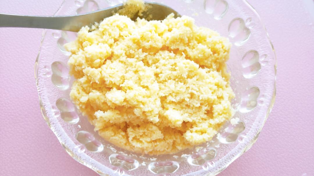 椰蓉馅料还忘了,放在最后吧。黄油提前软化,加入糖和蛋液搅拌均匀,再加入其他材料搅拌均匀即可