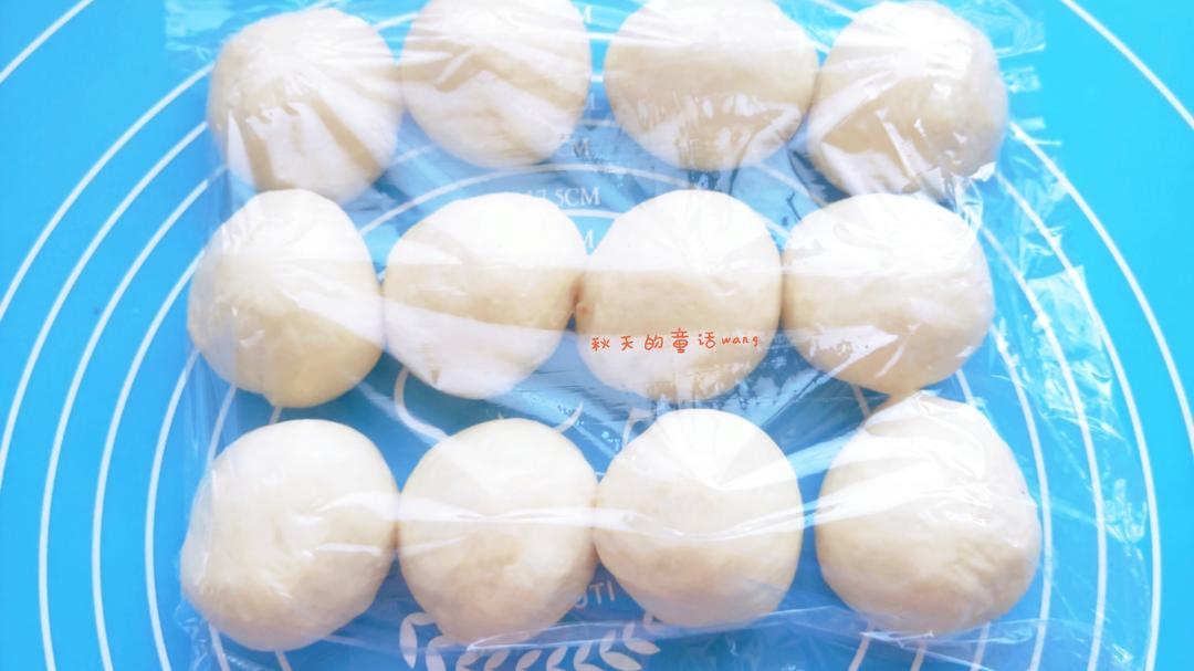 取出面团,平均分成12个,滚圆盖保鮮膜松弛10分钟
