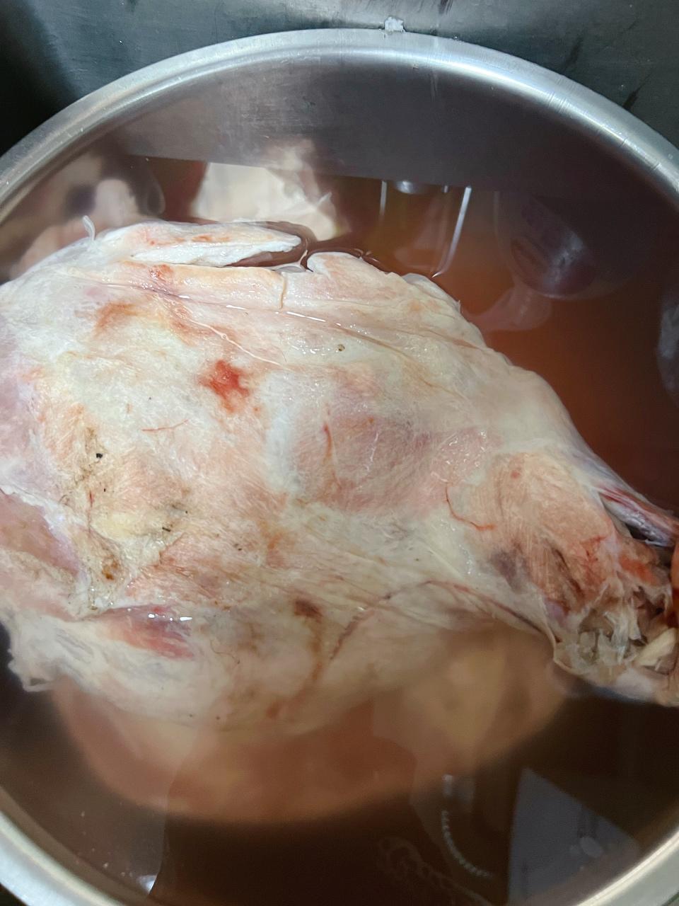因为羊腿是冰箱里冷冻拿出来的,所以提前泡水,去血水~