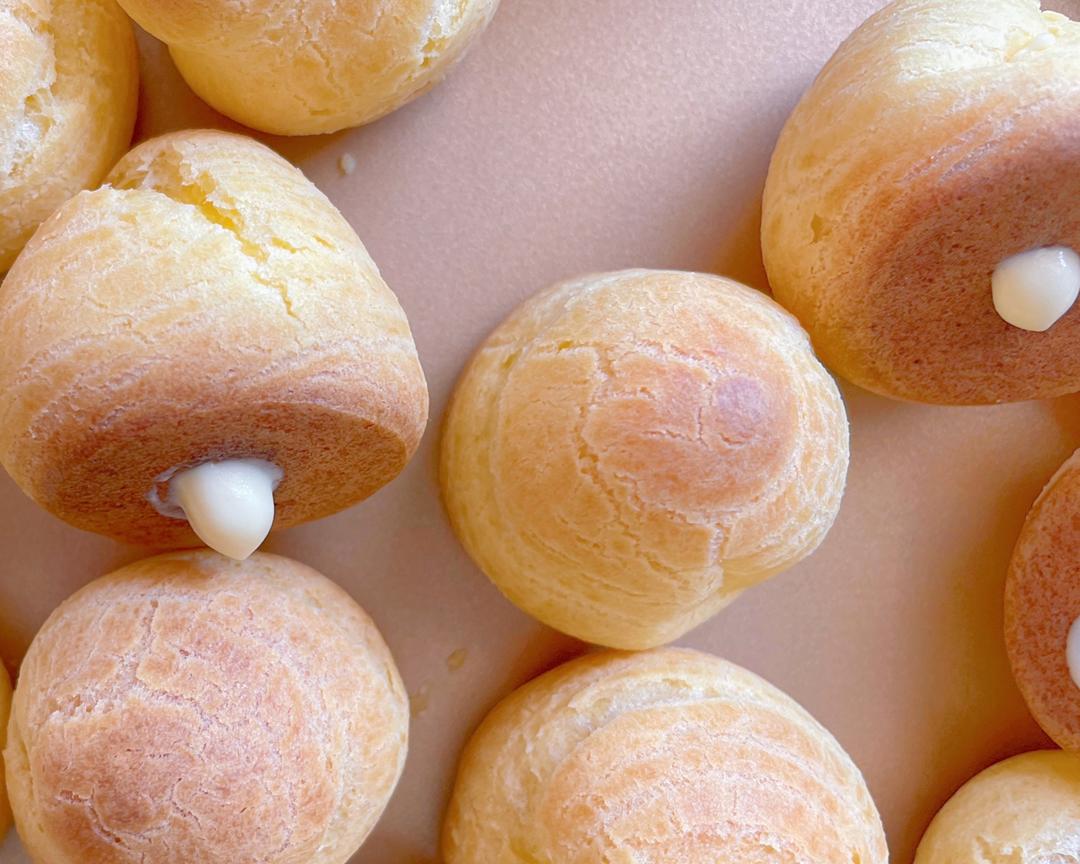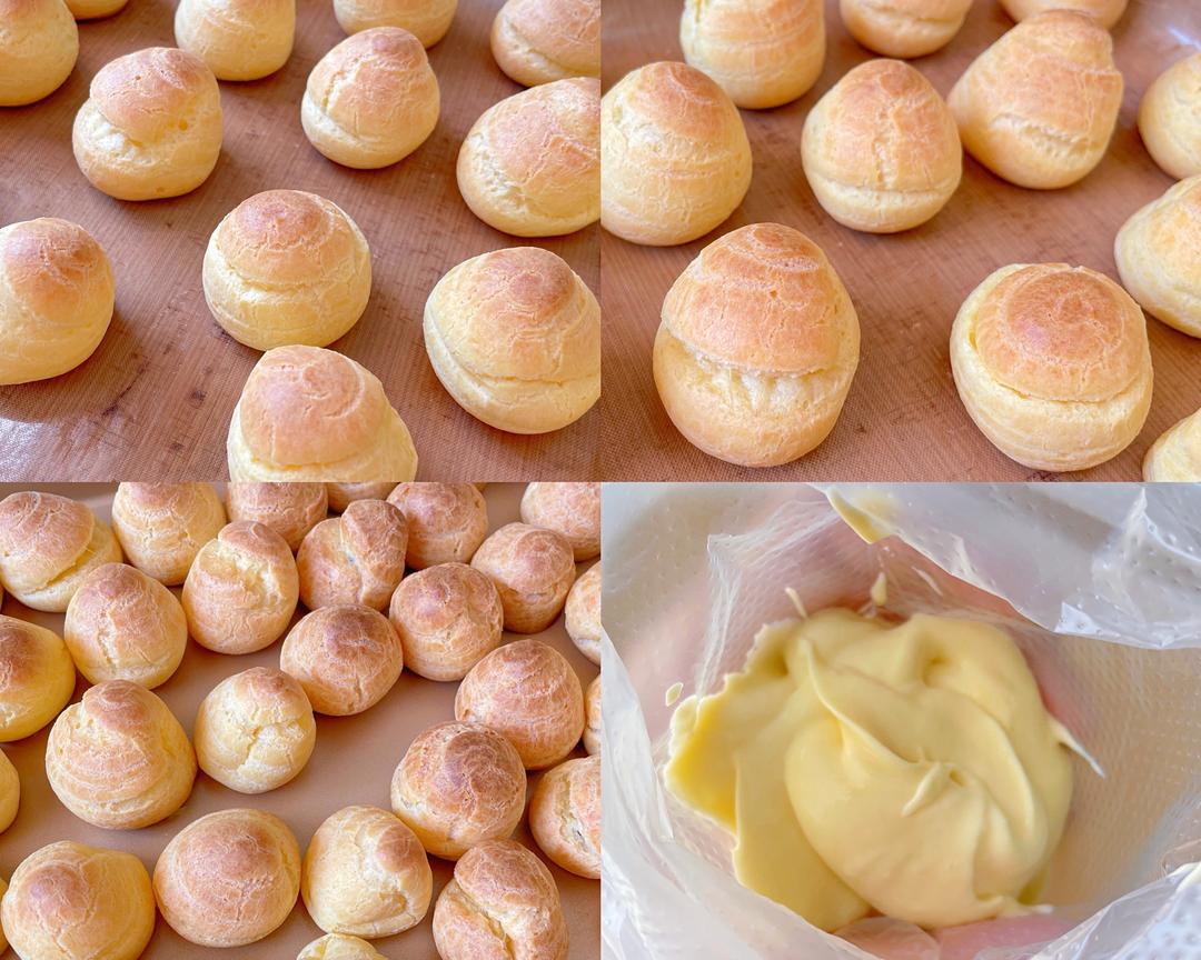 泡芙烤好后取出晾凉挤入做好的香草卡仕达酱,想吃多少挤多少真的太快乐了。