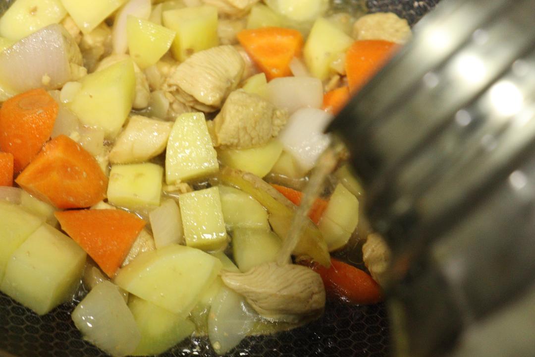 10. 倒入咖喱酱。