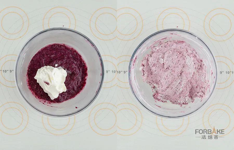 与冷藏后的杨梅奶酪糊翻拌均匀。
