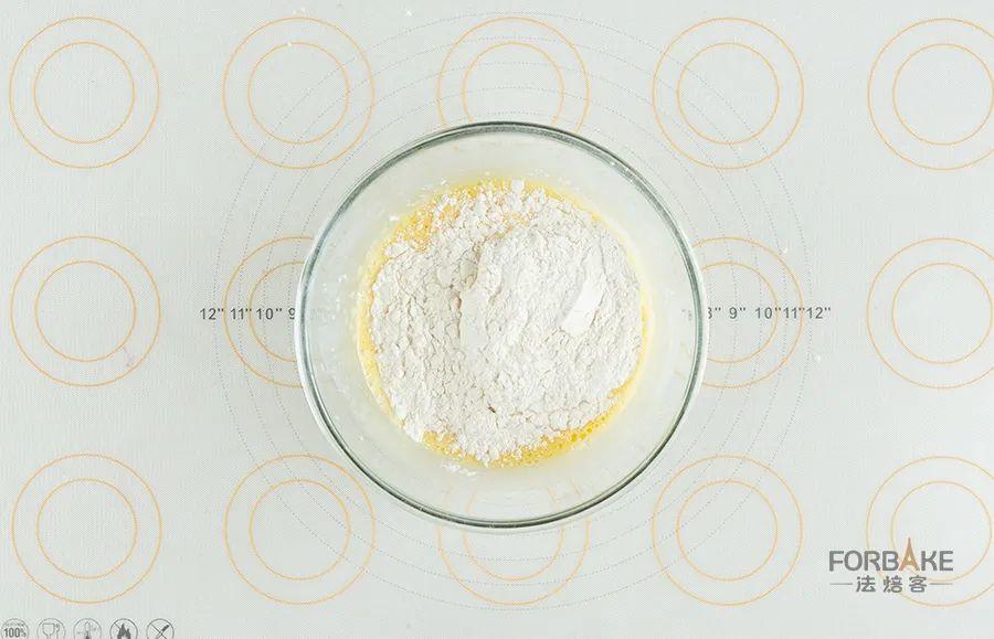 加入低筋面粉搅拌均匀。