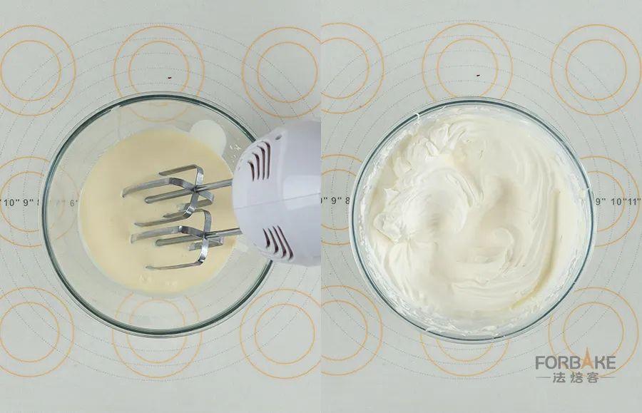 淡奶油打发至硬挺。