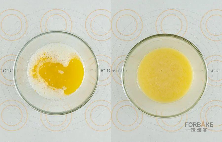 植物油和牛奶混合,搅拌均匀。