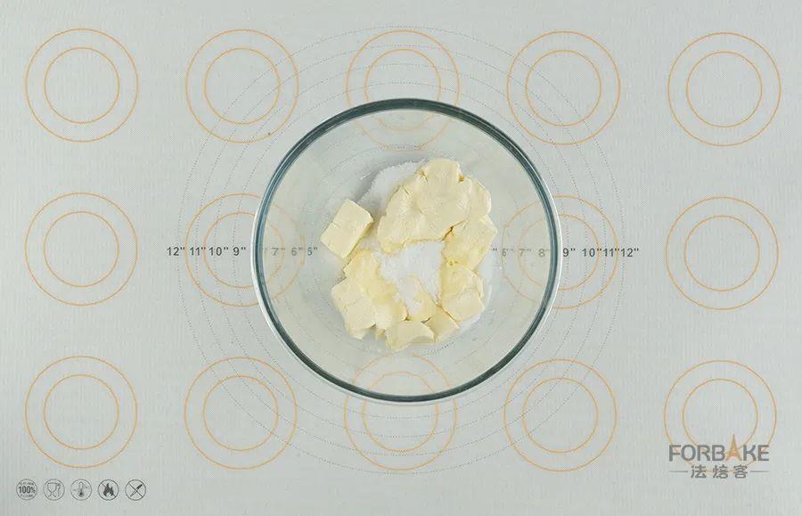 将奶油奶酪加细砂糖,加热软化搅拌均匀。