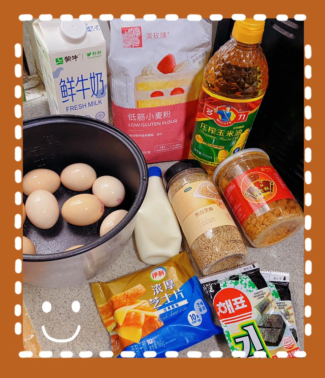 1、蛋白分三次加入白糖,打至湿性蛋白霜。 2、挖出三分之一蛋白霜进蛋黄糊里切拌均匀。把剩下的蛋白和蛋黄糊切拌均匀。 3、从高处倒入二分之一的蛋糕糊进模具里,放4片芝士片,然后撒上肉松和紫菜。 4、倒入剩下的蛋糕糊,震三下震出大气泡。