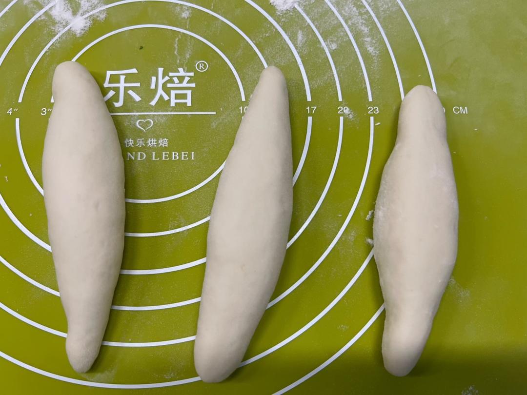 把面团分成约6个等份的小剂子,搓成长条