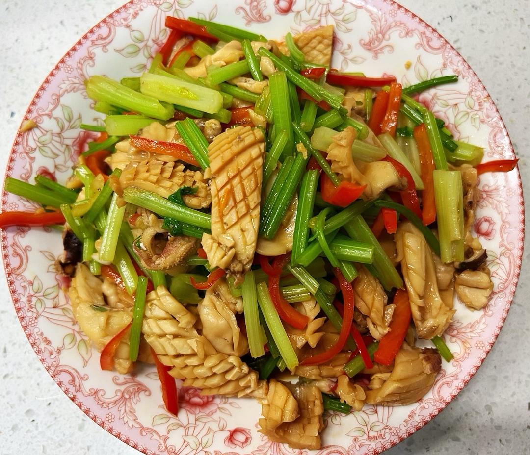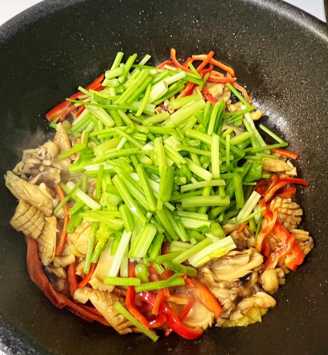 下墨鱼干煸炒,墨鱼干有很浓咸鲜味儿