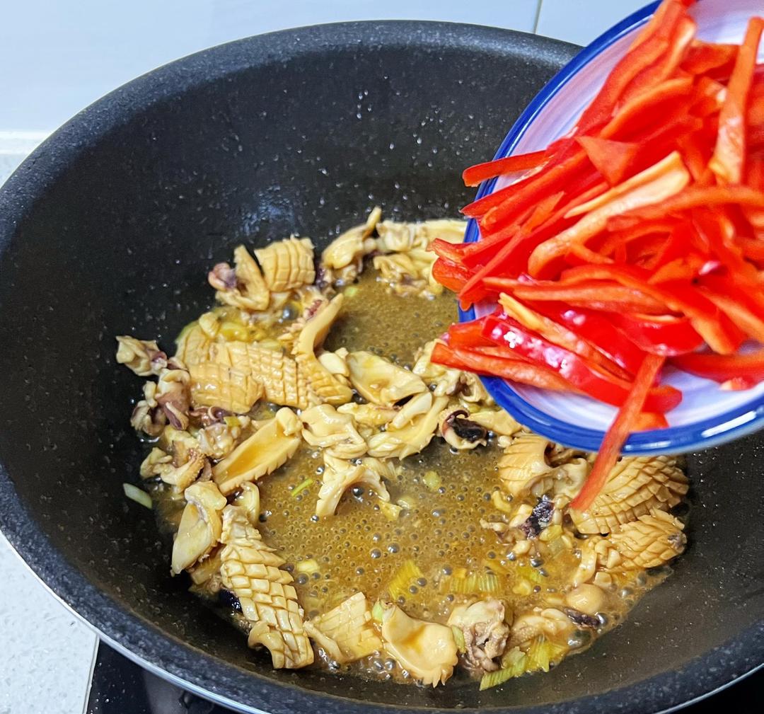 倒入红椒丝