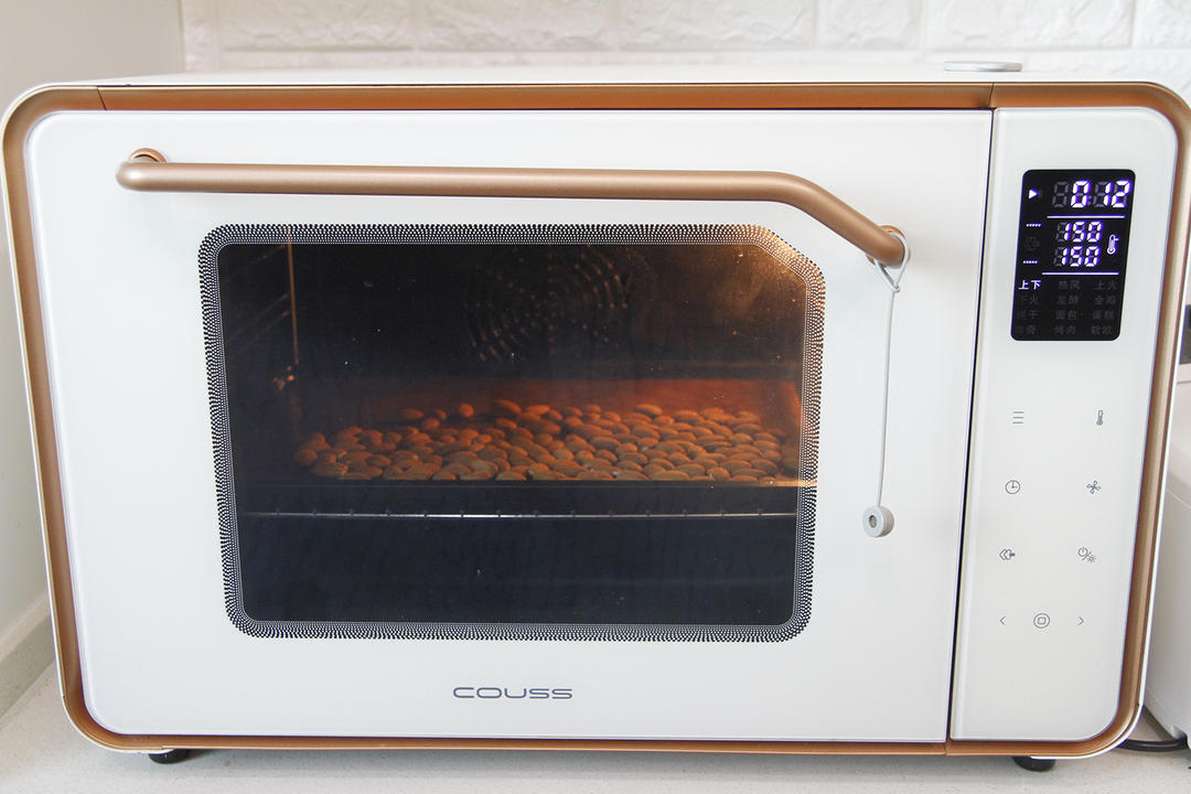 烘烤结束,饼干胚放网架冷却约10分钟(烤箱继续预热着);