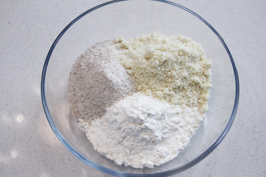 将粉类放入大碗中,先混合均匀备用;