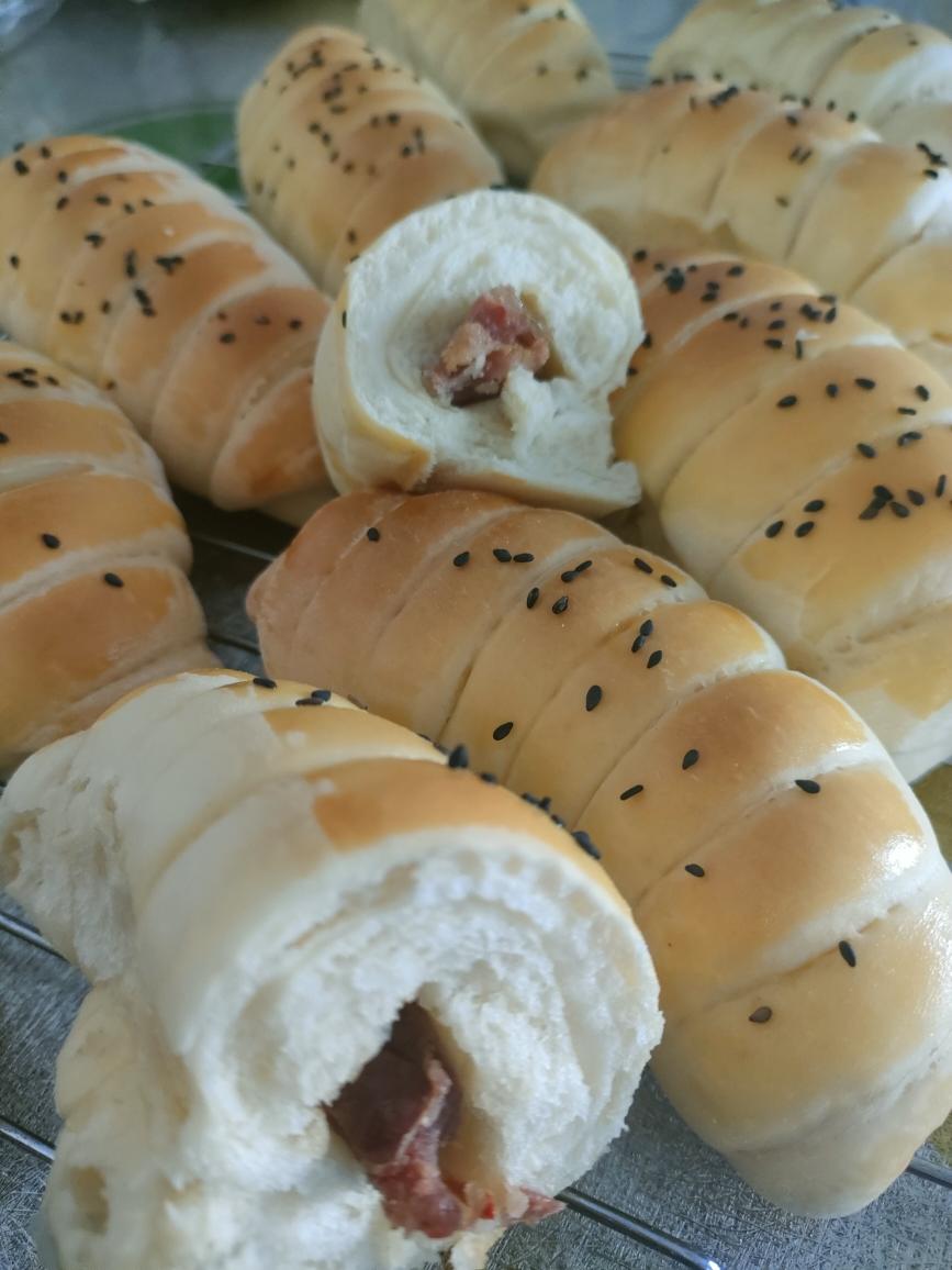 因我用的是四川麻辣腊肠,煮水后总是弯曲,所以造型有点不受我控制🤣,但决不影响它的口感。