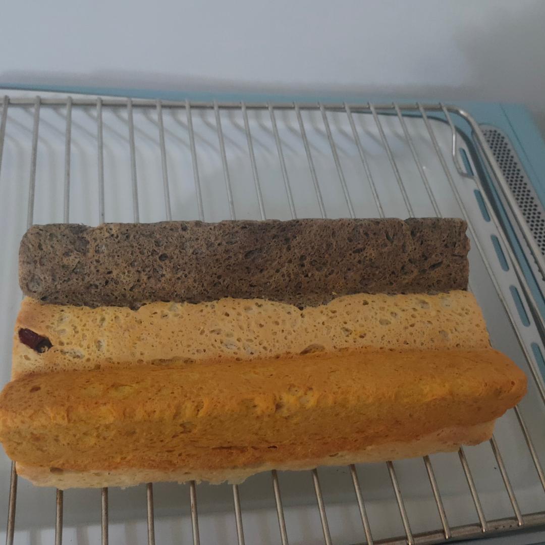 烤完取出吐司盒,脱模后将吐司放在晾架上晾凉。