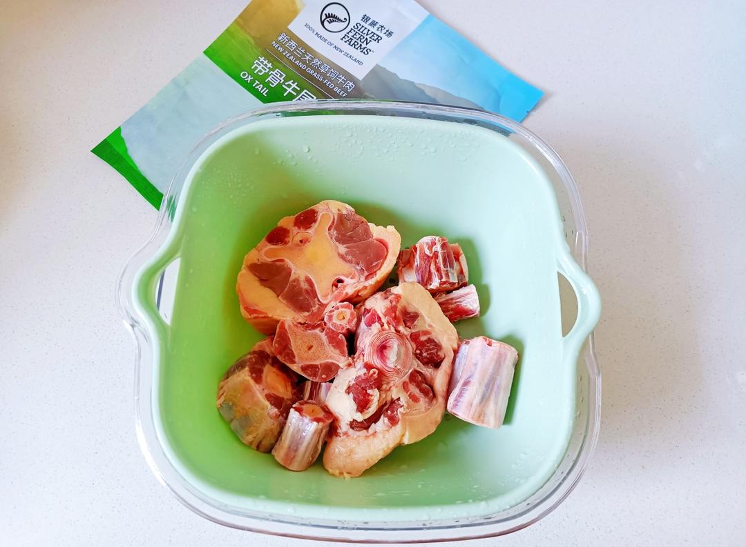 首先把牛尾骨自然解冻,今天用的牛尾骨是新西兰天然草饲带骨牛尾,筋肉相间,纹理很清晰,胶质丰富,很适合煲汤。