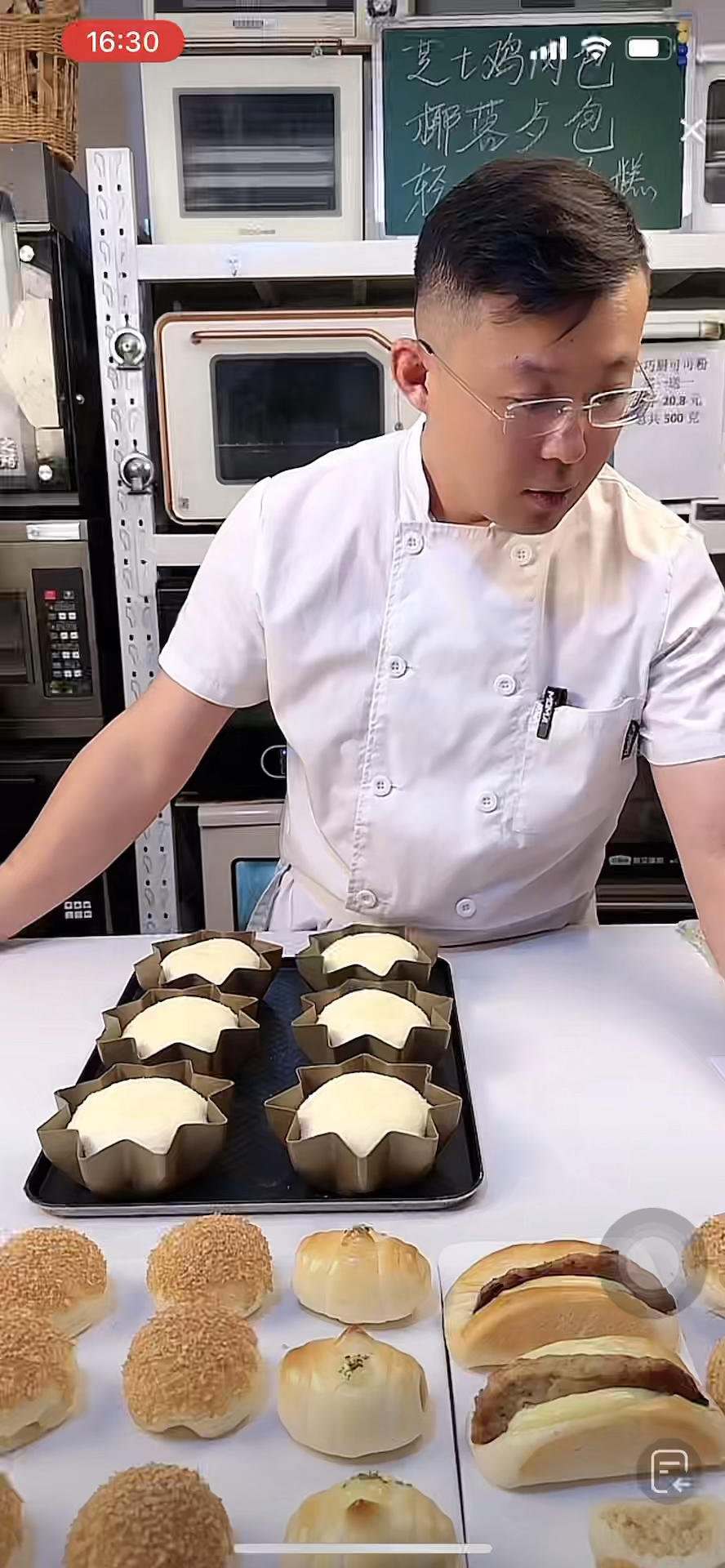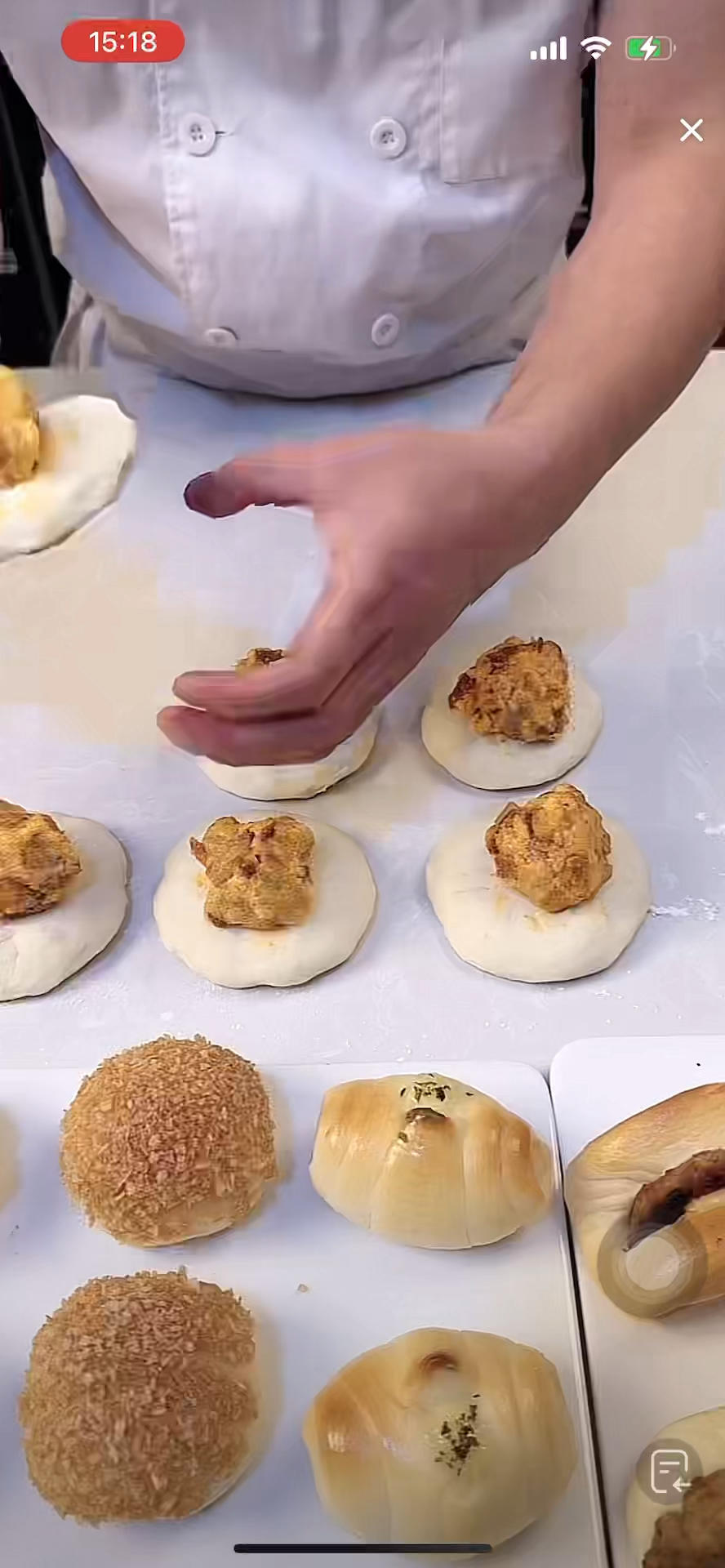 打面:锯齿膜➕黄油,手套膜出缸,一发30分钟 均分成6个,揉圆,放回醒发箱松弛15-30分钟