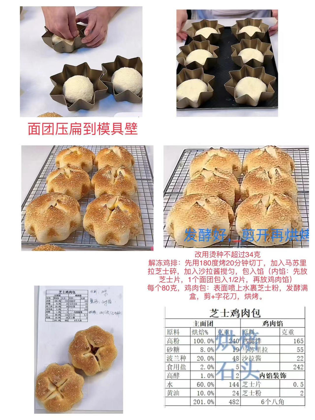 放芝士片,一个面团放二分之一片,然后每个放上40克鸡肉馅
