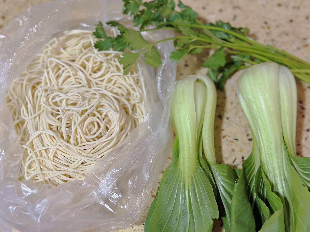 准备好面条和青菜