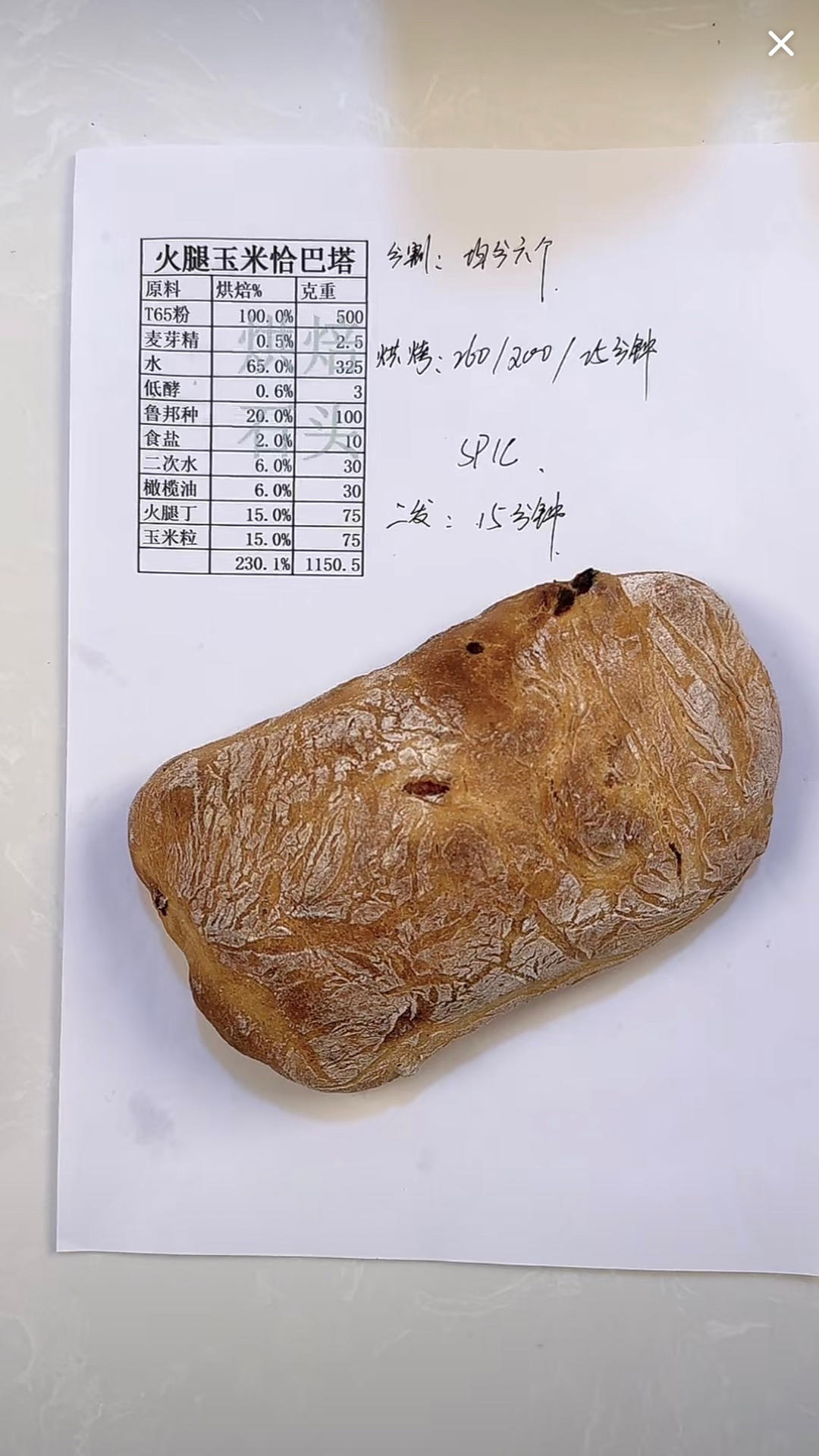 将油布转移到烤盘背面,滑到预热好的烤箱中,抽出烤盘,喷蒸汽,多喷点,乔立sp1c ,260/200,25分钟,家用烤箱的话,230/220,25分钟