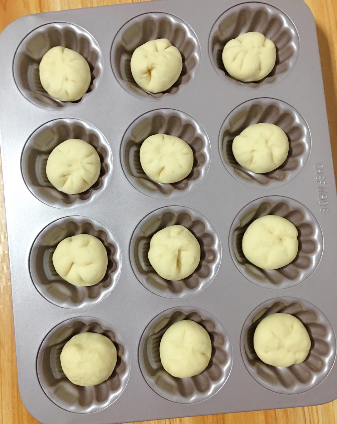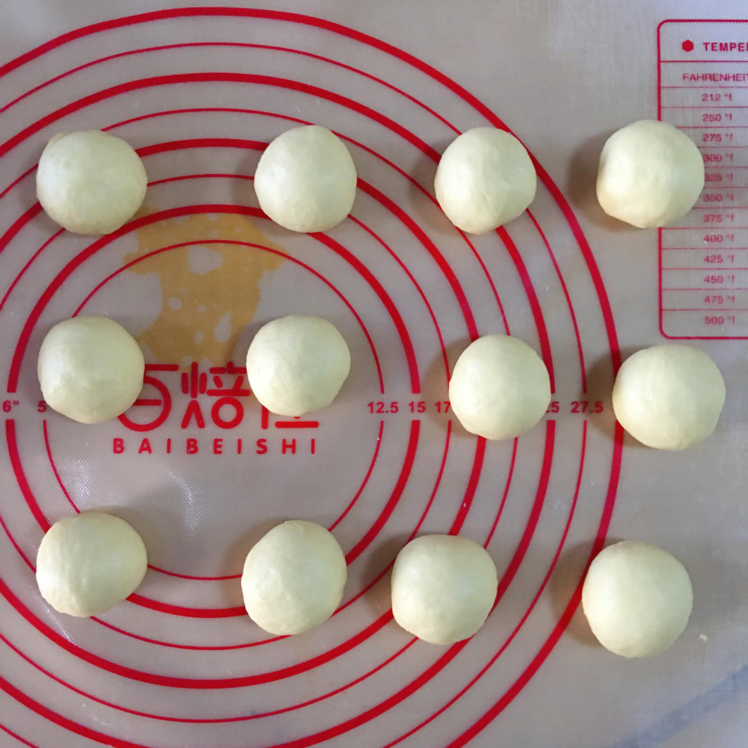 将面团平均分成12份,整圆盖上盖子发酵20分钟🐚