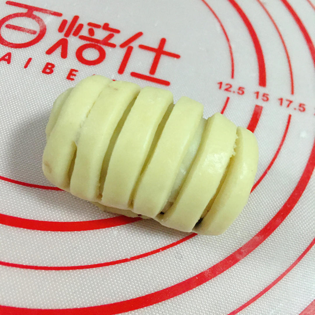再擀长,1/3的面团切6小条。