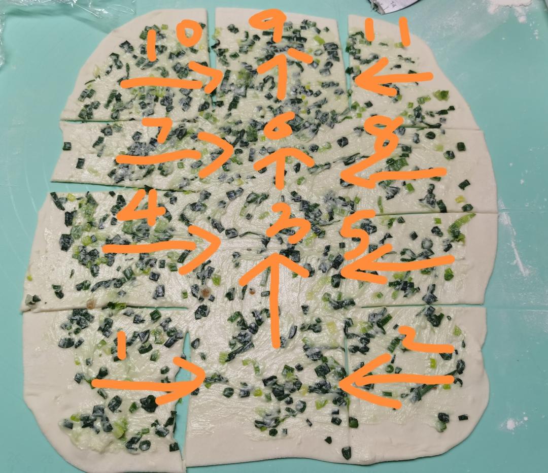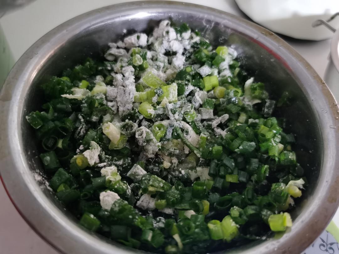 把猪油融化,加入小葱、盐、椒盐、低筋面粉;
